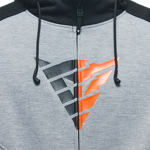 Dainese sweatshirt in soft fabric with soft Pro-Shape 2.0 protectors on shoulders and elbows and system for attaching Bluetooth earpiece.